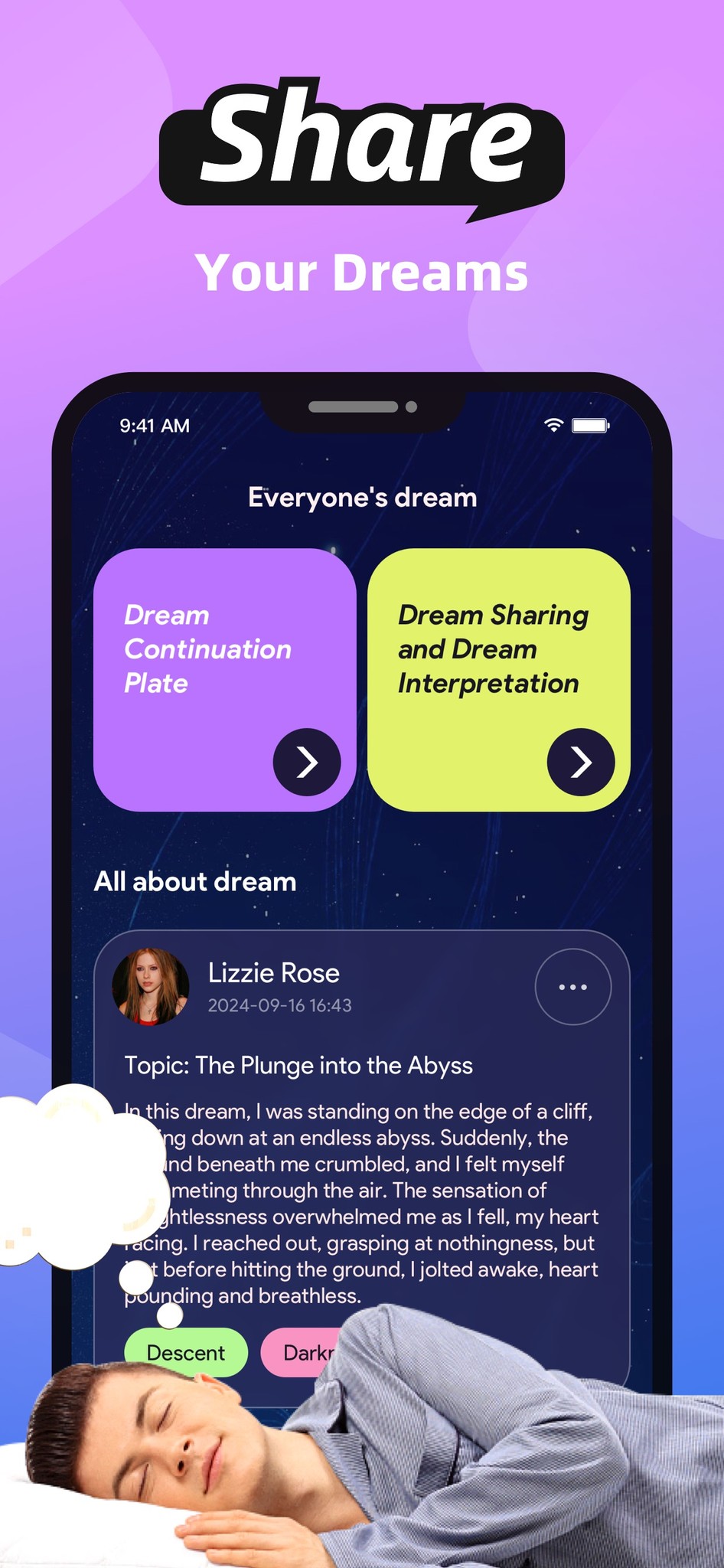 Users can share their dream stories with the community for interaction and discussion with other users.
